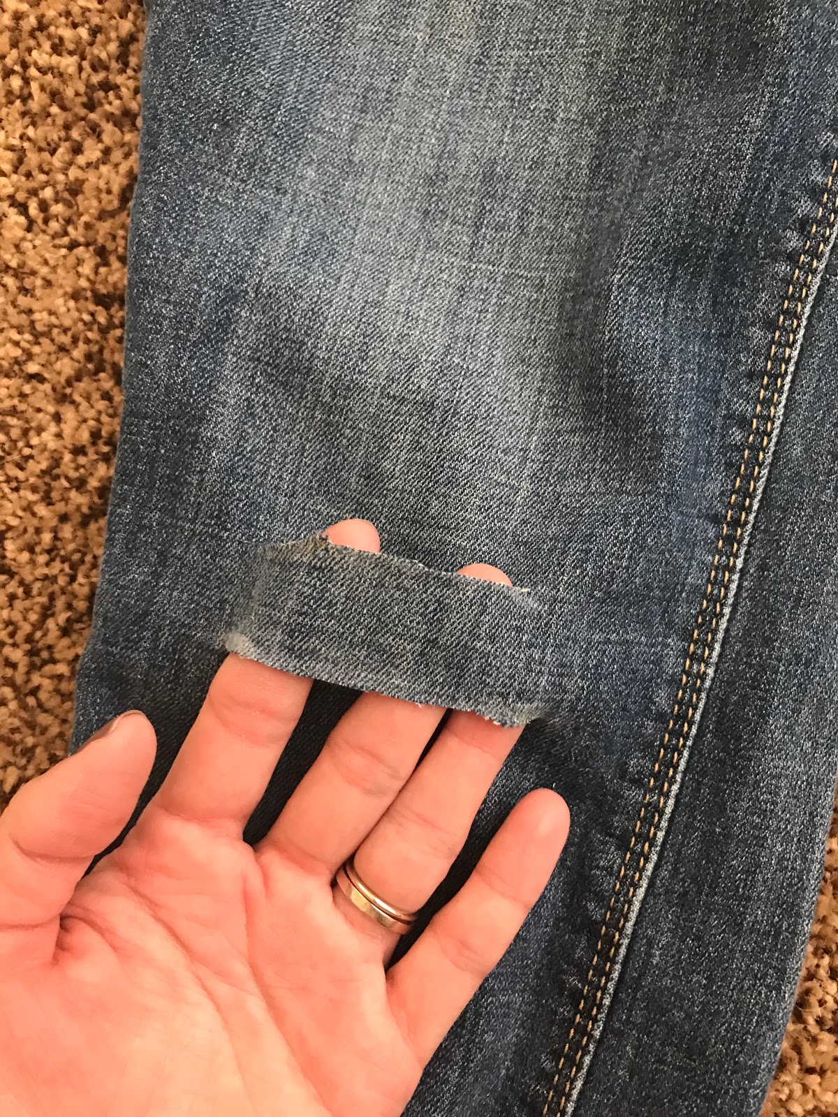 Step 6: Once you’re done with one hole, move on to the next and do the same technique until you’re done. I was very pleased with how my second pair of jeans turned out. Now a pair of jeans that I was ready to put in my Goodwill bag a month ago are my new favorite pair of jeans.