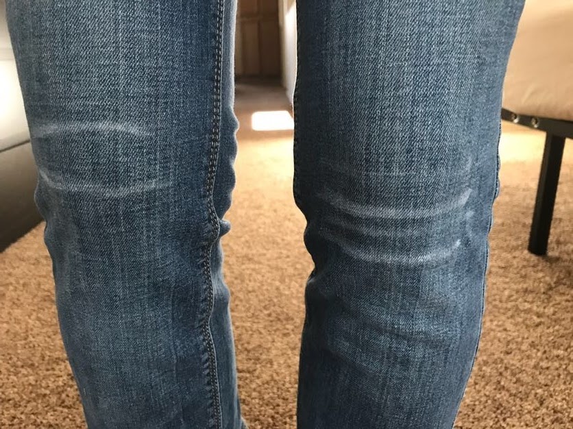 Step 1: Pick out a pair of jeans that you want to distress. I would go for an older pair or a cheaper pair of jeans that you wouldn’t mind if you messed up. The jeans I picked for this post are a pair of Express jeans that I’ve had in my closet for probably 10 years. They needed a makeover! I recommend that you do some research first on what style of distressed jeans you want. I personally don’t like too many holes, so I kept it simple with 2 holes on the knee and a small hole on the upper leg on one side.