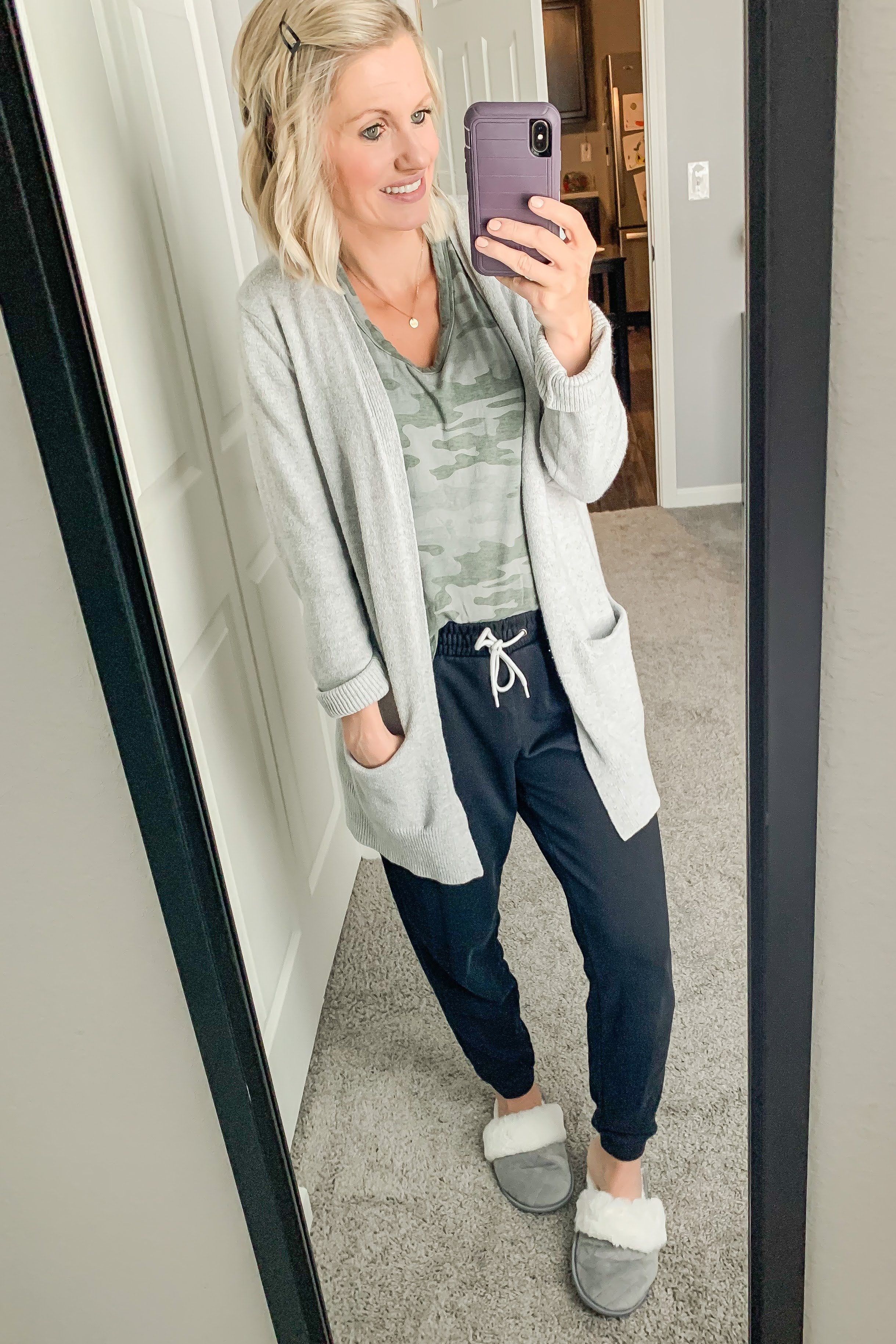 I love shoes and lately, I’ve developed quite the slipper obsession. I just like having some sort of shoe to go with my outfit, even if it’s a slipper. I have a couple different styles of slippers that you will see in my outfits below. Just like shoes, I like to have a nice variety of slippers. Of course, when I leave the house I put on a pair of shoes that can dress up my outfit a bit.