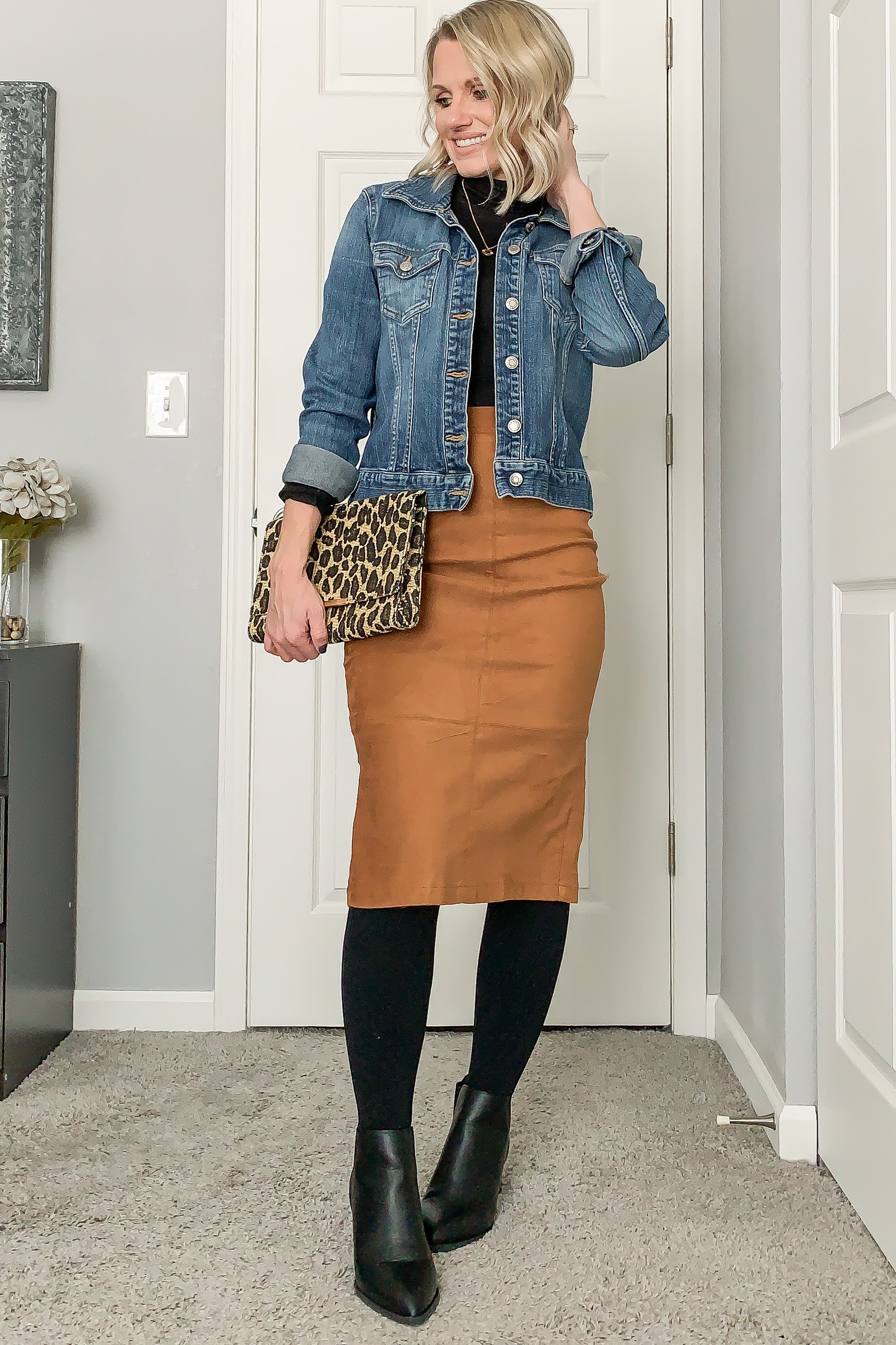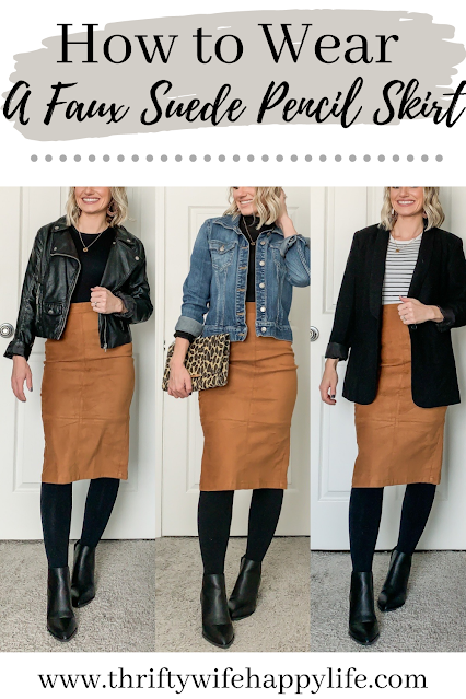 Today I want to share a couple different winter outfit ideas with this faux suede pencil skirt.