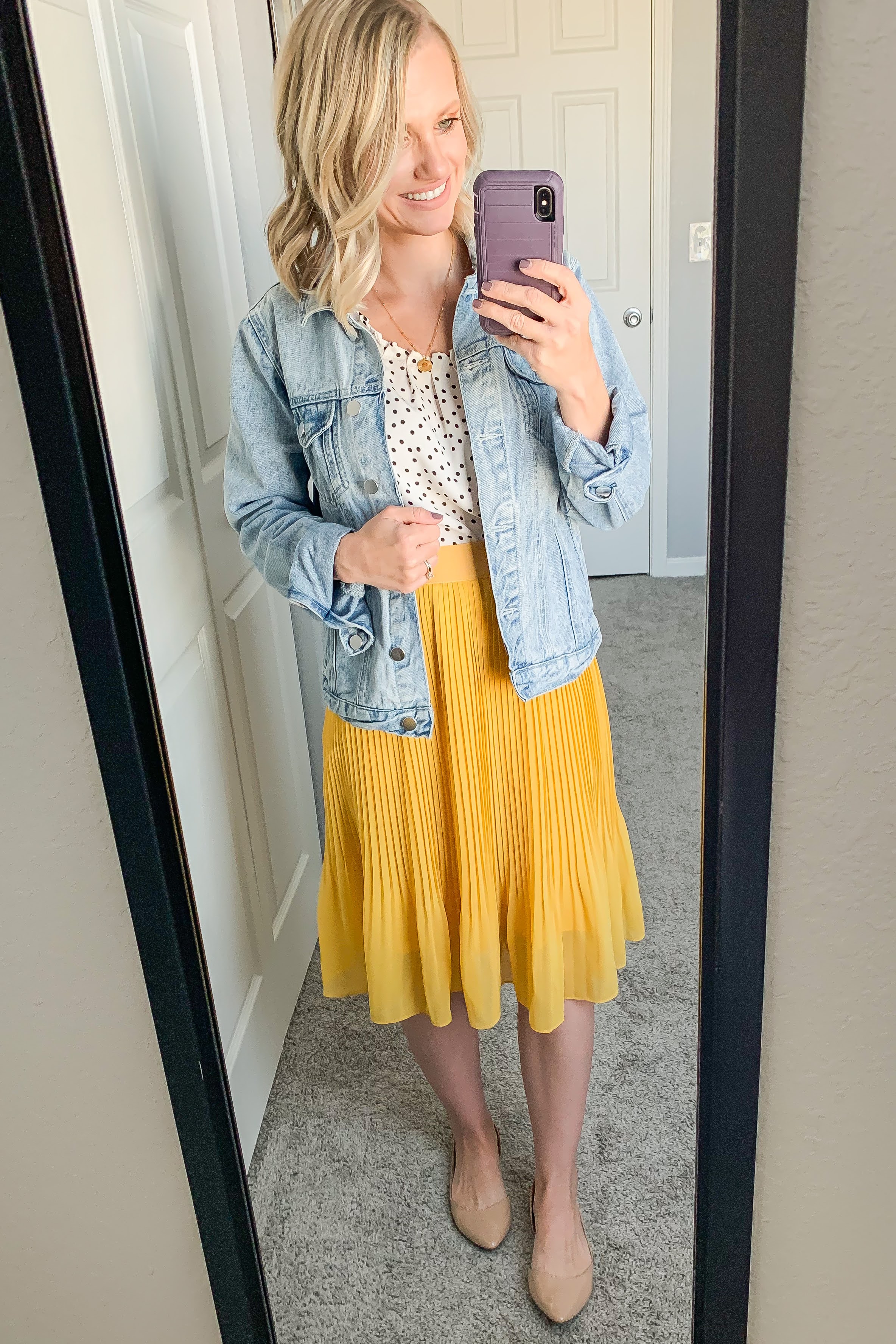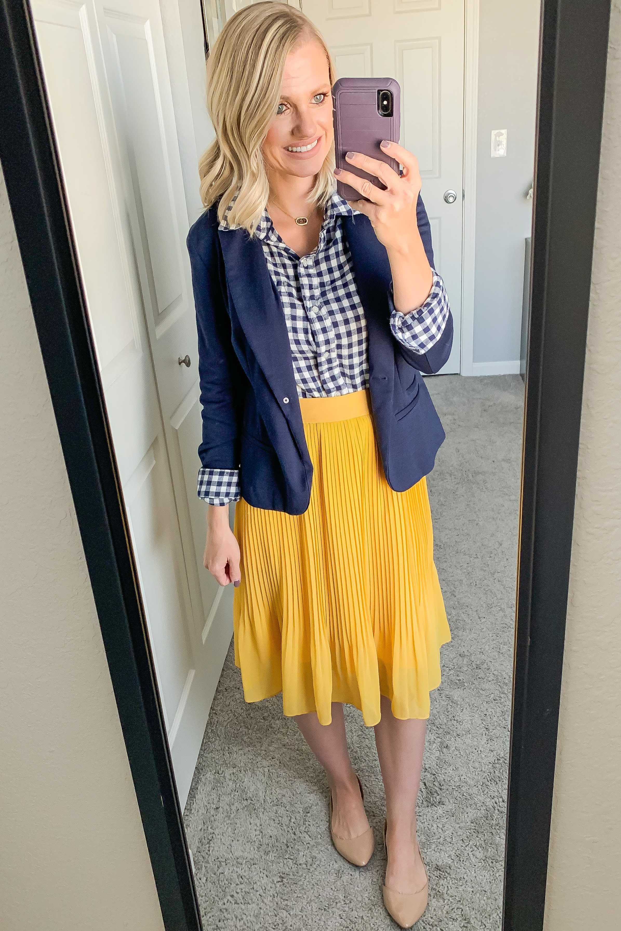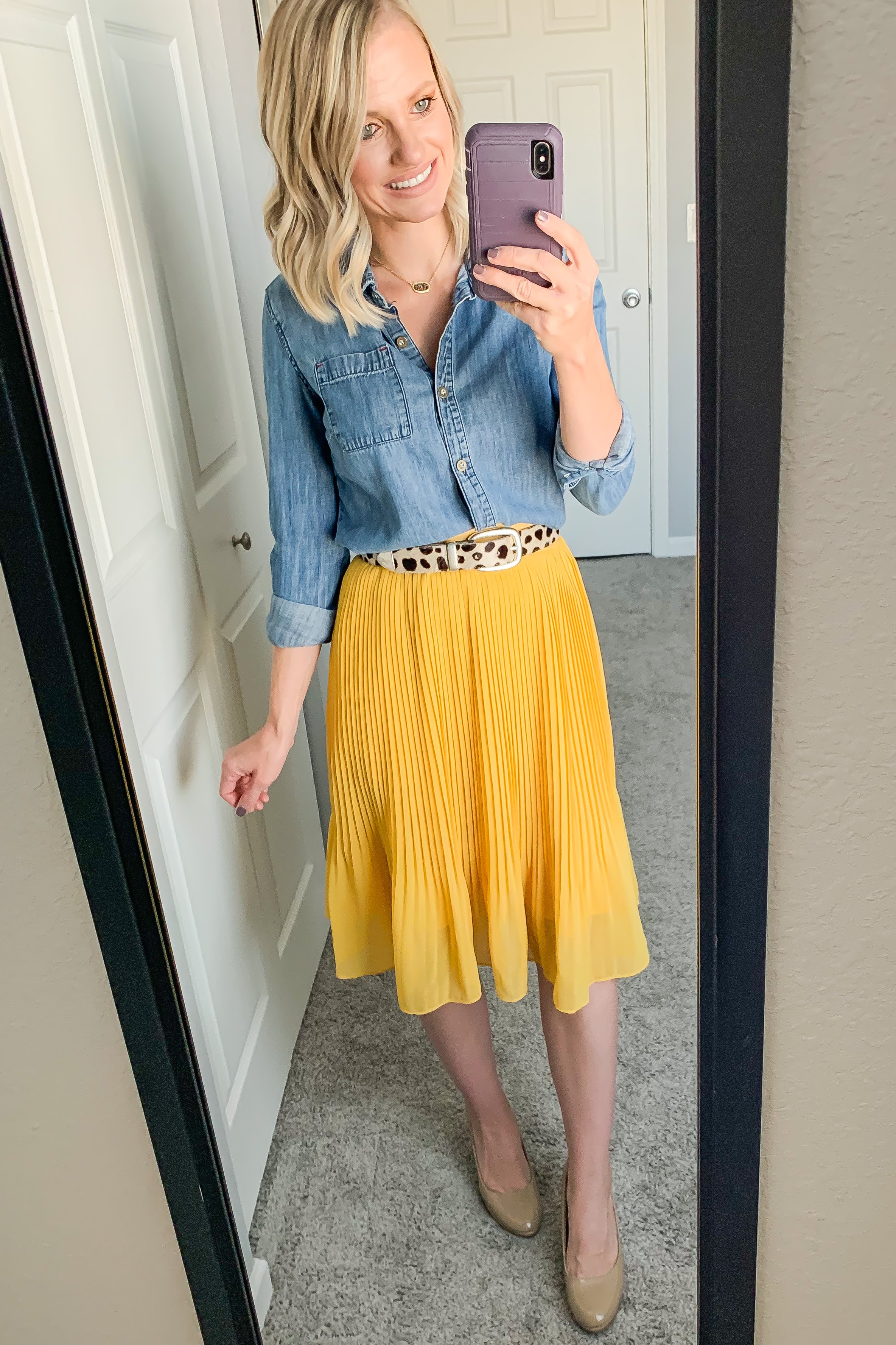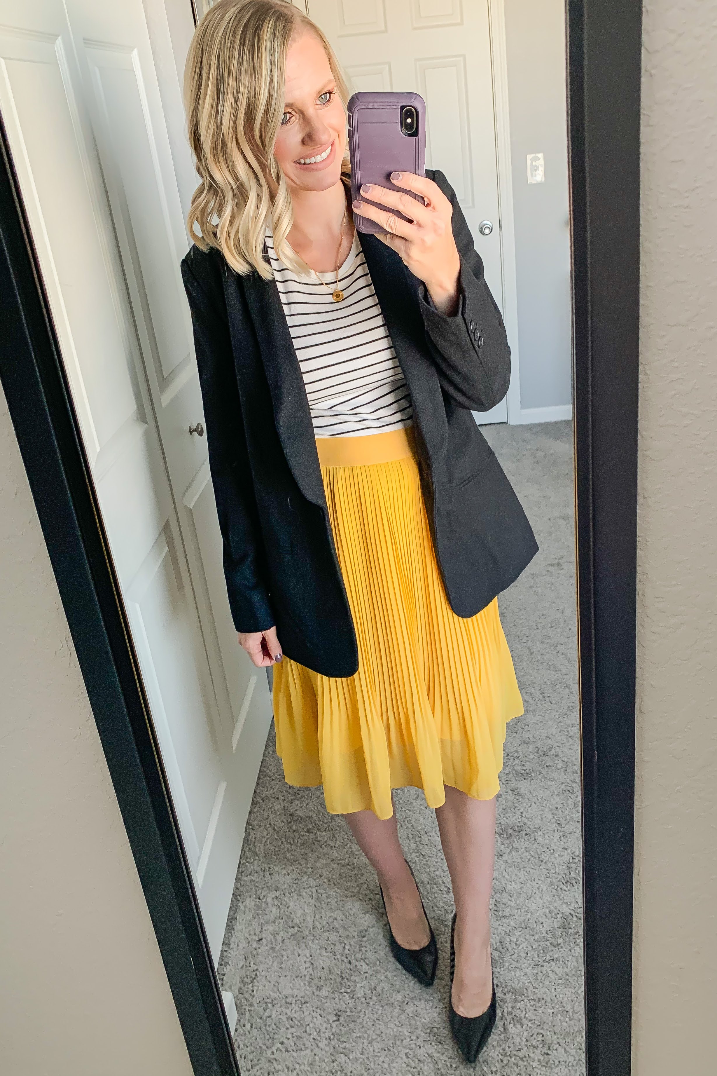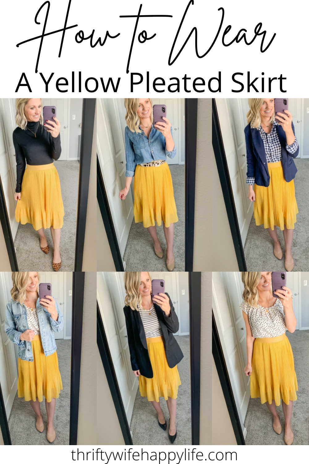 I’ve been loving pleated skirts lately. A few months ago I found this yellow pleated skirt at ThredUP and I’ve been dying to share it on the blog. I’m also dying to actually wear it somewhere. I think that it would be the perfect teacher skirt. It makes me want to go out and get a new teaching job just so I can wear this skirt. But since I’m not going to actually do that, I guess I will share it with all of you incase you are looking for a little work wear inspiration.