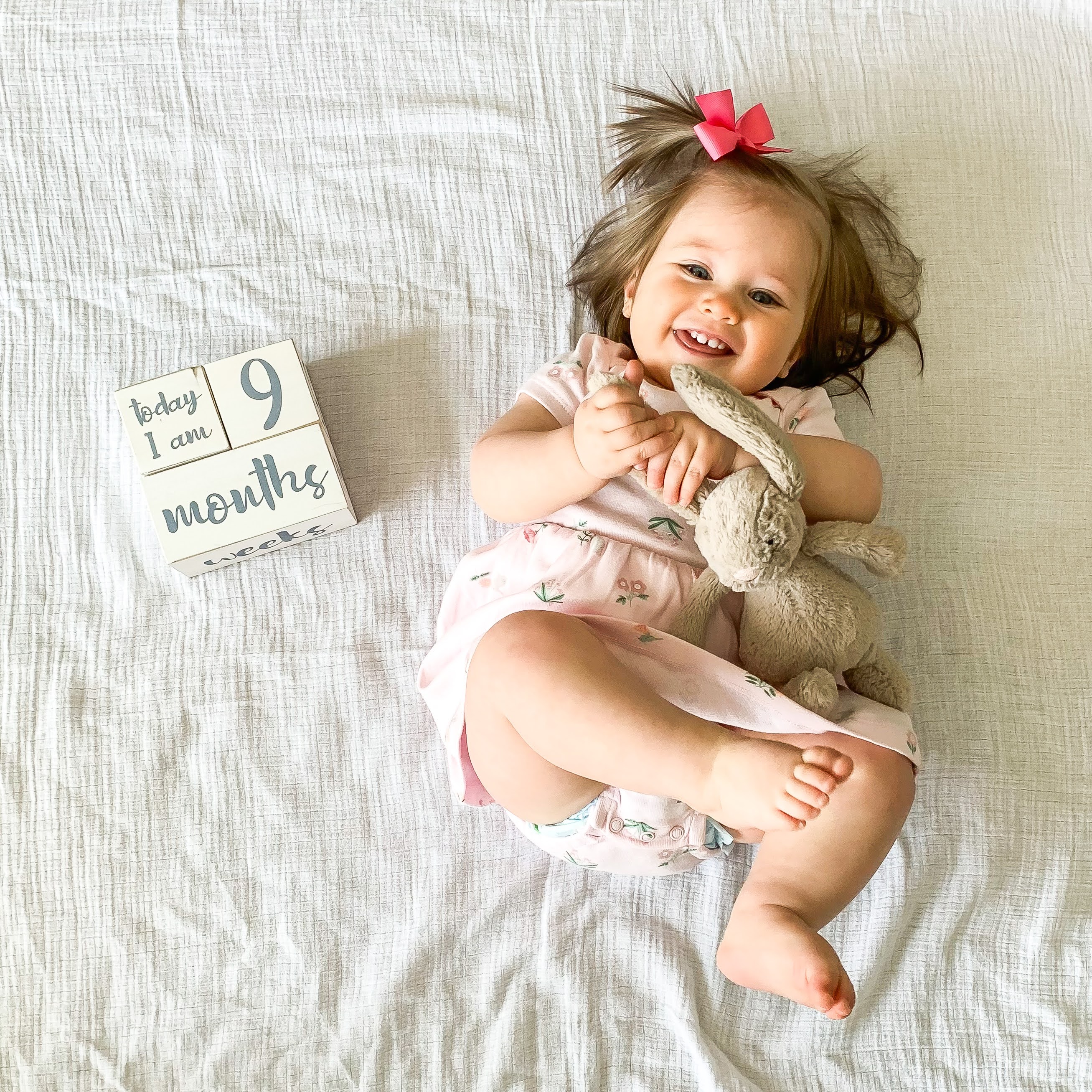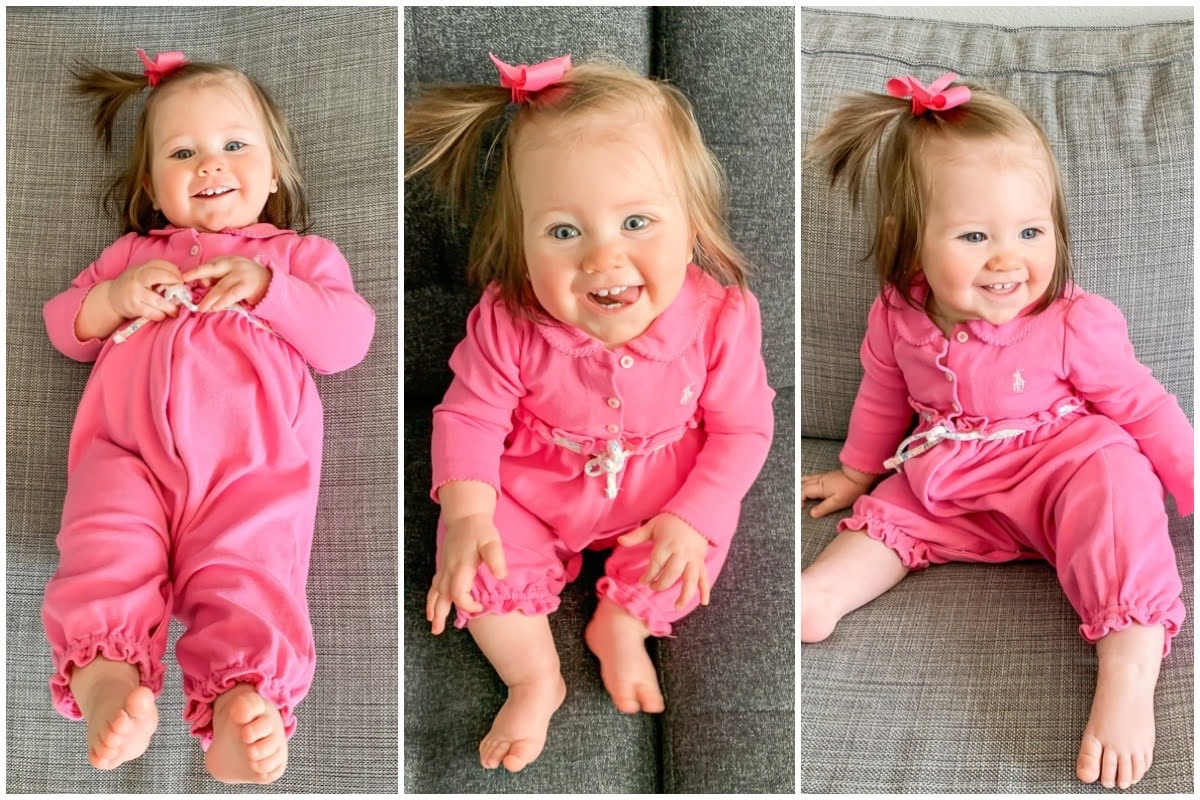 Anna is 9 months! It’s hard to believe how fast it’s going by. I thought my first baby grew up way too fast, but I was wrong. I feel like everything is going by so much faster the second time around. It’s crazy to me how quickly things change from month to month when you have a baby. She’s always doing something new.
