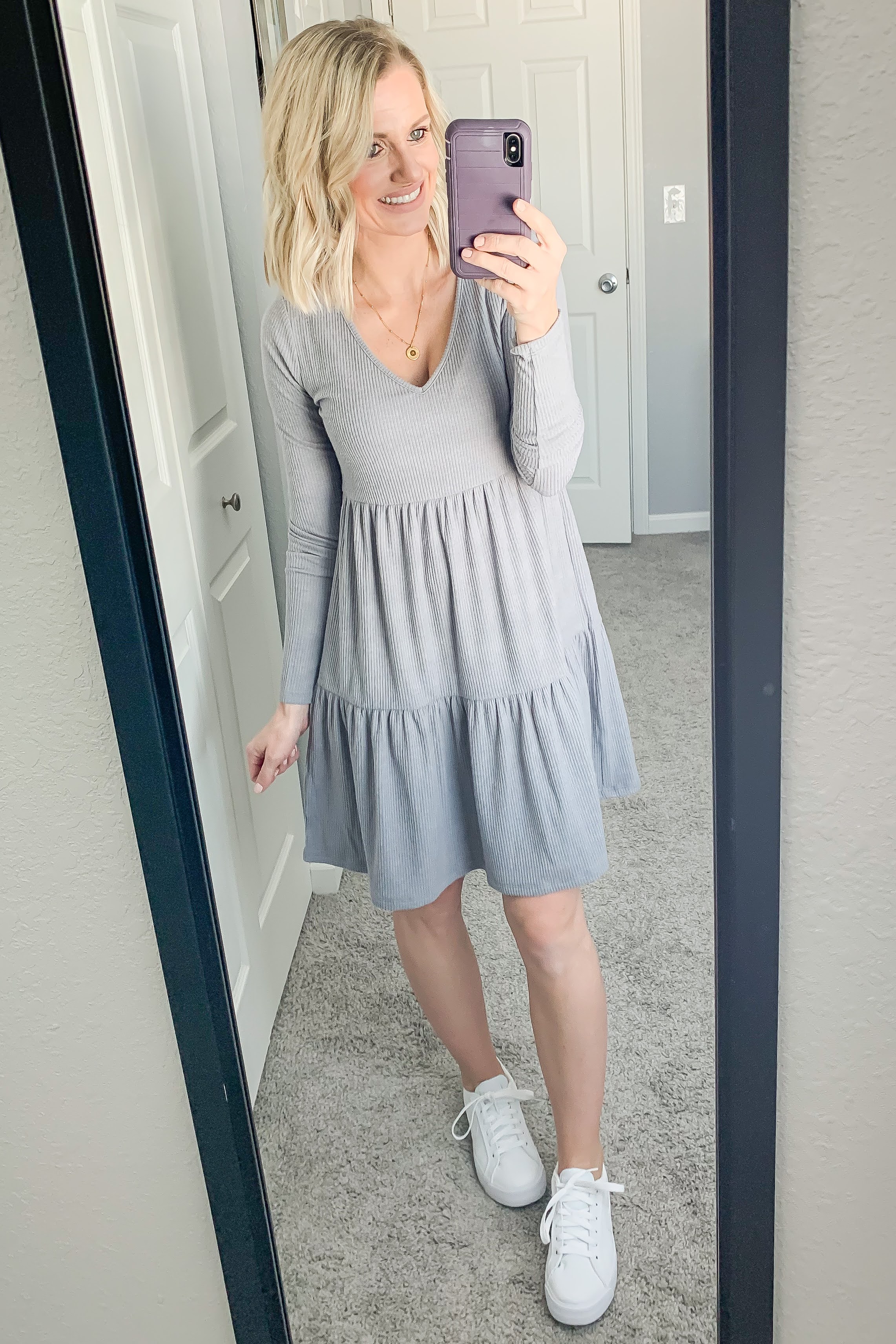 Once the weather officially warms up I can’t wait to wear sandals with this dress.  I feel like there are so many fun ways that you can accessorize this dress for warm weather.  Adding a hat or denim jacket is always cute, but you can always dress it up with a blazer too!