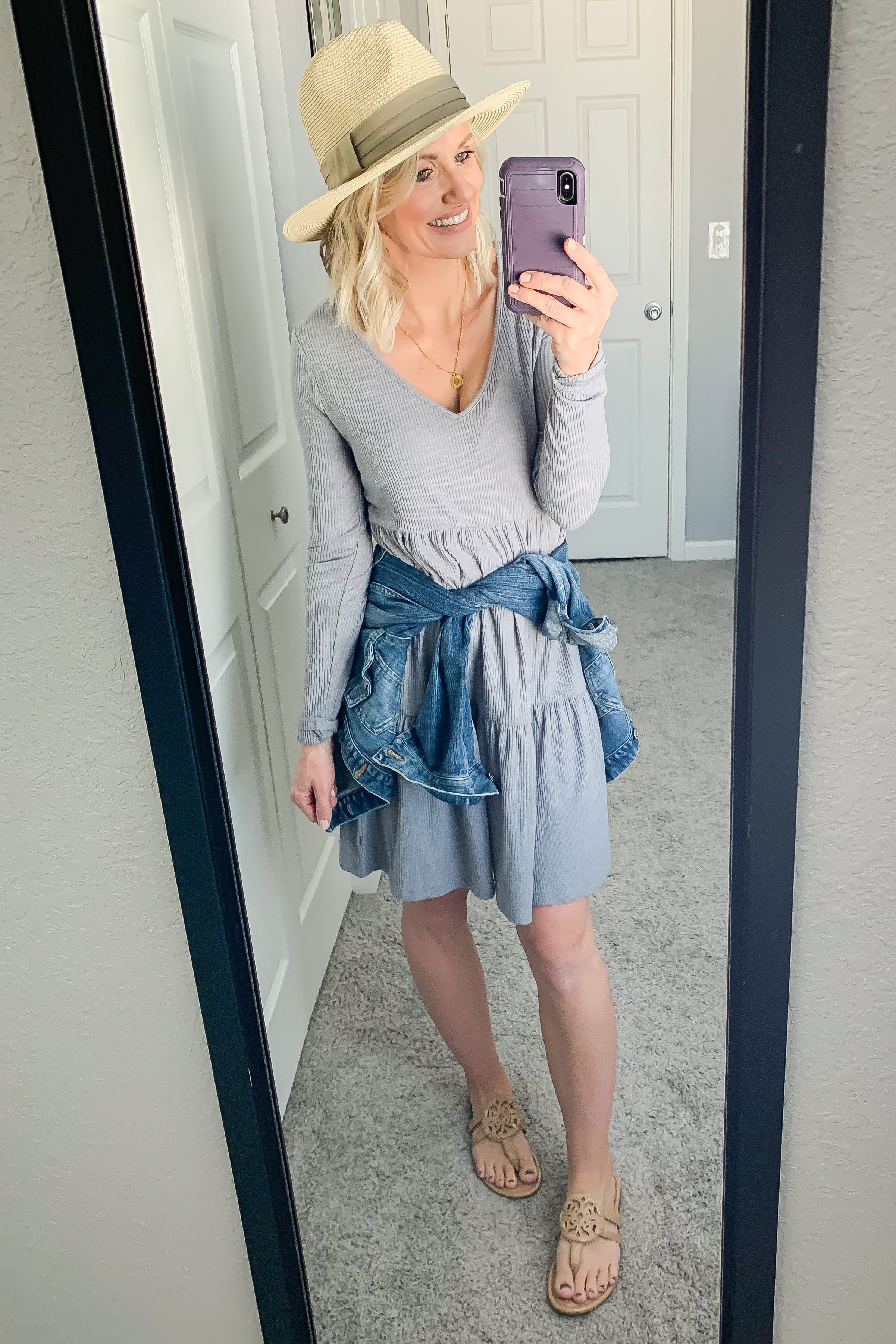 7. Cute dress! I love how versatile it is. My favorite part is the tiered skirt. I am obsessing with tiered dresses right now. Love your dress paired with your chambray shirt. Classic lewk! 🙂