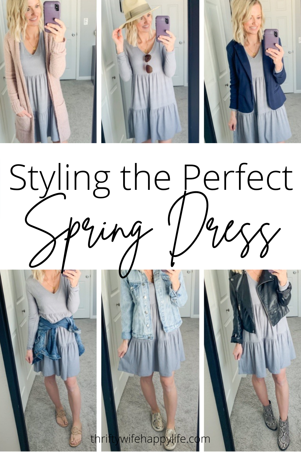 This dress is so perfect that I could probably wear it everyday.  The outfit options for it are endless.  I like that you can dress it up or down.  You can also wear it in colder weather by adding some layers to it.  Here are some different ways that I will be wearing this affordable spring dress.
