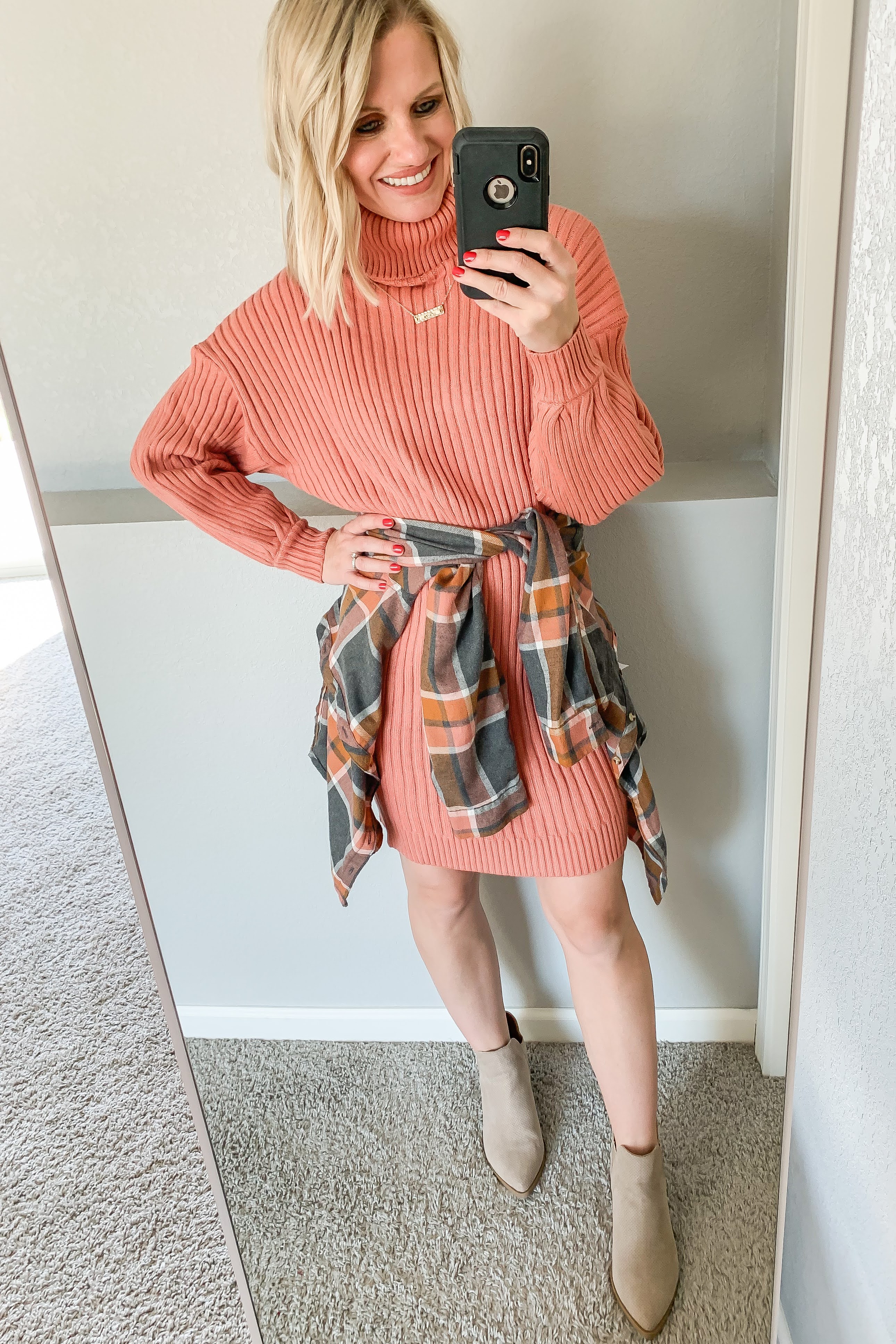 I recently bought 2 affordable sweater dresses from Amazon. Both have a little different style and feel to them. Even though I often find sweater dresses hard to style, I was able to find a lot of different ways to wear these 2 dresses.