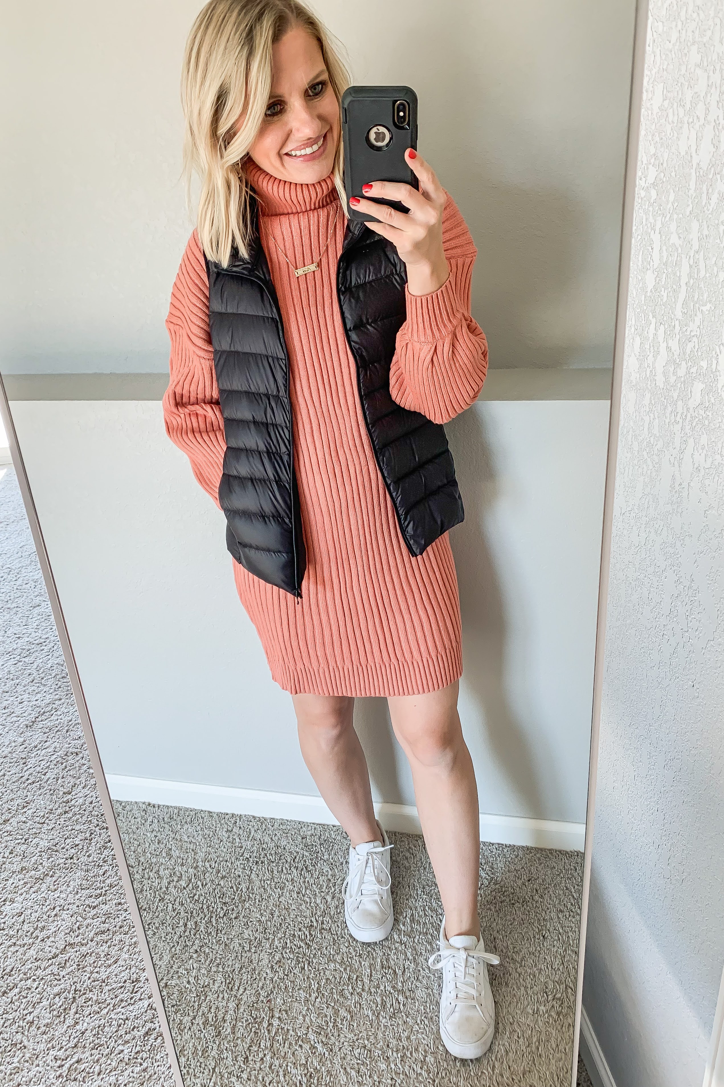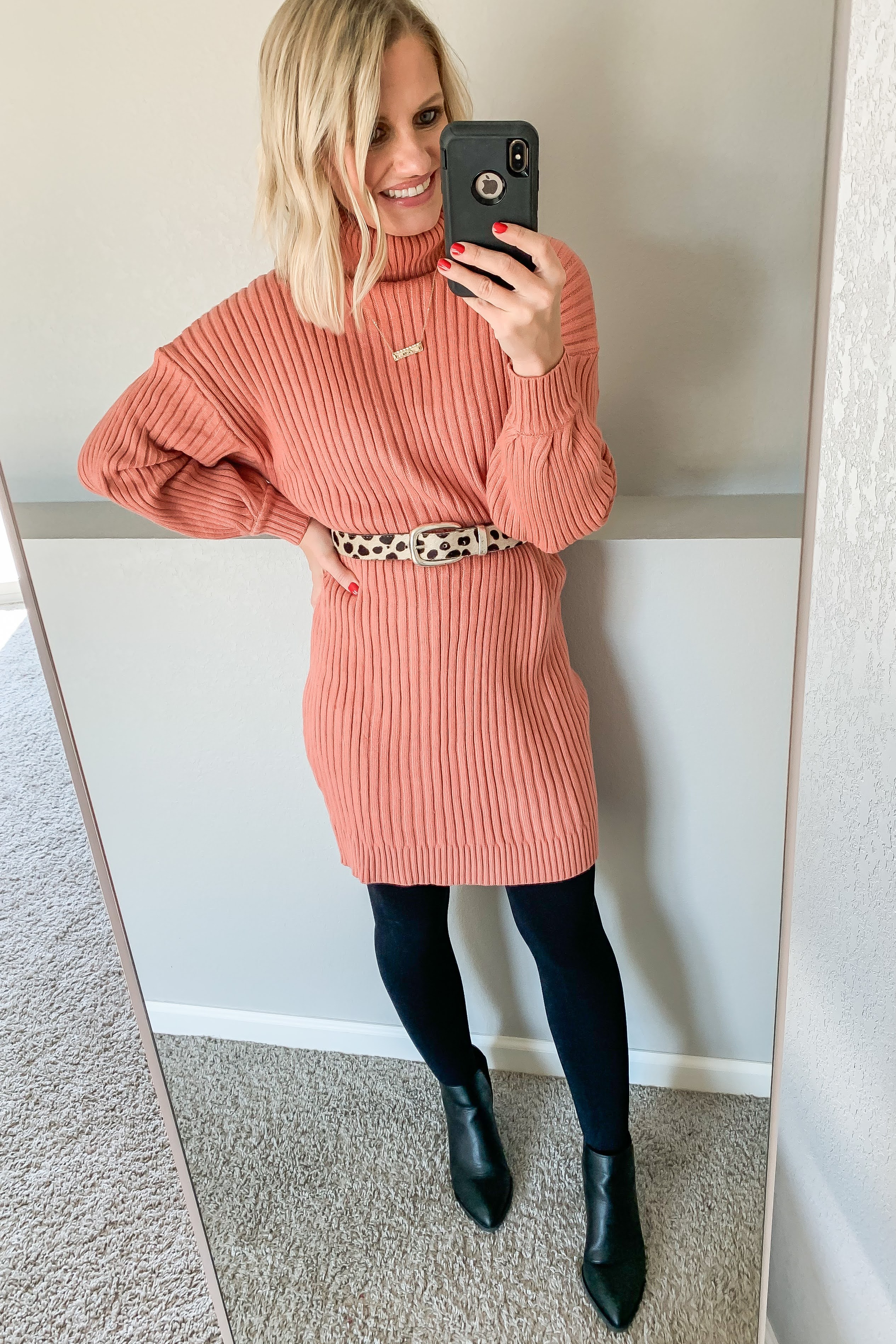 This dress kept popping up on Amazon whenever I searched for sweater dresses. It comes in a lot of different colors but I really loved the orange. This dress fits true to size and it was a good length on me. The top part of the dress has an oversize feel to it. I personally felt this made my shoulders a little too big. The turtleneck was also a little tight around my neck. It gave me a neckbrace feel, so if you don’t like the feel of a tight turtle neck, this dress may not be for you. I still feel that it’s a cute and very cozy dress. Here are 4 ways you can style it.